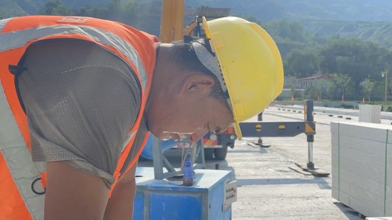 正處在沖刺階段的凈因橋建設(shè)工程施工現(xiàn)場(chǎng),溫度計(jì)指針一次次沖向極限刻度。然而,橋梁腹拱深處、高聳的橋墩上,八公司參建人員的身影從未缺席,頂著熱浪堅(jiān)守崗位,在高溫“烤”驗(yàn)中為橋梁通車爭(zhēng)分奪秒,汗水浸透的工服濕了又干,無(wú)聲訴說(shuō)著這場(chǎng)夏日攻堅(jiān)的艱辛。午后的凈因橋施工現(xiàn)場(chǎng),測(cè)量員肩扛儀器,在鋼筋叢林中深一腳淺一腳地挪動(dòng),額頭前的汗珠順著臉頰滑到下巴,“啪嗒”一聲滴落在儀器顯示屏上,“差1毫米都不行”,手指在儀器上快速操作,又俯身用游標(biāo)卡尺反復(fù)校準(zhǔn)數(shù)據(jù),“零誤差”已成為他們的工作準(zhǔn)則。質(zhì)檢員正握著輕型觸探儀,將探桿對(duì)準(zhǔn)一個(gè)個(gè)測(cè)點(diǎn),“哐哐”的錘擊聲在熱浪中回蕩,隨后又轉(zhuǎn)身來(lái)到材料堆放區(qū),對(duì)新進(jìn)場(chǎng)的構(gòu)件逐一核驗(yàn),動(dòng)作利落且專注,而被汗水浸透的工裝、被曬得黝黑的皮膚,都是沖刺路上最鮮活的勛章。在這片被烈日炙烤的工地上,全體施工人員擰成一股繩,用“戰(zhàn)高溫、斗酷暑”的拼勁,讓這座橋梁在拼搏與汗水的滋養(yǎng)下,一步步邁向勝利通車的時(shí)刻。