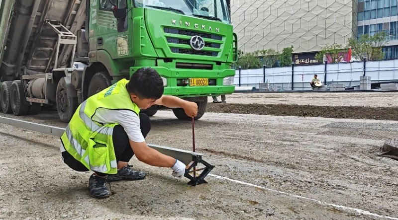 “以工匠精神,打造城市街道的靚麗名片”。項(xiàng)目部對(duì)所有進(jìn)場(chǎng)花崗巖板材進(jìn)行逐塊檢驗(yàn),確保板材表面平整度、缺陷指標(biāo)符合設(shè)計(jì)要求,讓石材自帶“高顏值”。施工中,施工人員嚴(yán)格控制混凝土基層表面平整度偏差,確保壓實(shí)度達(dá)到95%以上;鋪貼階段采用“試鋪—校正—精鋪”的工藝流程,嚴(yán)格按配比配制干硬性水泥砂漿;鋪貼時(shí)使用橡皮錘從板材中心向四周均勻輕擊,確保砂漿飽滿密實(shí),相鄰板材高差控制在正負(fù)1毫米以?xún)?nèi),接縫寬度保持均勻一致。鋪裝完成后利用專(zhuān)用填縫劑進(jìn)行嵌縫處理,并實(shí)施保濕養(yǎng)護(hù),確保鋪裝層達(dá)到平整美觀、堅(jiān)固耐用的質(zhì)量要求。