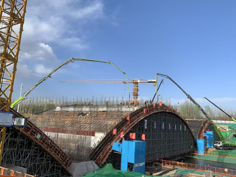該橋采用單跨72米連續(xù)5跨設計,主腹拱作為橋梁的核心承重結構,是此次橋梁施工的核心節(jié)點,項目團隊順利克服弧形施工、模板一次成型、大體量澆筑、五跨精準落架等挑戰(zhàn),以“毫米級”精度貫穿施工全過程,為橋梁成型打造堅實“筋骨”。