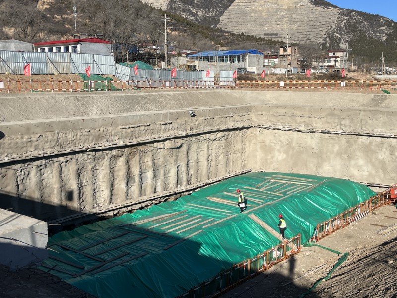 項目部組建專項指揮工作組,進行全方位、全流程精細化管理,重點防止出現(xiàn)混凝土水化熱過高、內外溫差較大,導致結構產(chǎn)生裂縫的情況。前期重點優(yōu)化混凝土設計配合比,從原材優(yōu)選入手,減少混凝土水化熱影響;中期采用分層分段澆注方式,保證混凝土澆筑連續(xù)性,嚴格把關鋼筋及模板拉桿連接、冷卻水管位置等細節(jié)質量,確保澆筑質量達標;同時在混凝土內部及表面布置測溫點,及時觀察記錄溫度變化,為澆筑施工提供堅實保障;后期進行毛毯覆蓋灑水養(yǎng)生、內設循環(huán)冷卻管路,嚴格控制水的流量流速,流量范圍